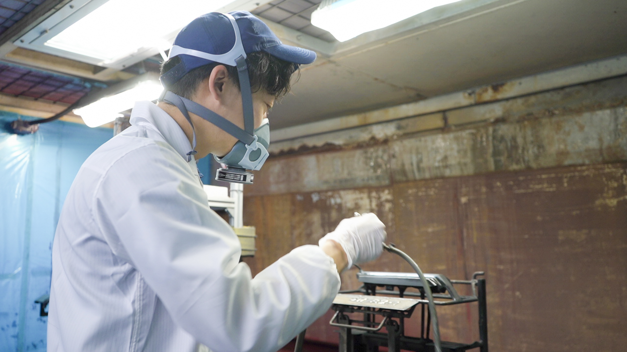 ロボット塗装のオペレーター業務に加えて、手吹き塗装も担当しています。